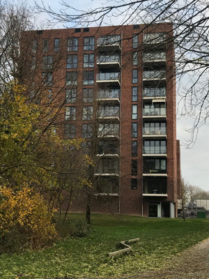 Annelies (68) koos na het overlijden van haar echtgenoot om de 55-plus woning – waar ze samen hun intrek hadden genomen toen hij ziek en rolstoelafhankelijk werd – te verlaten. Ze vond zichzelf nog te jong voor de plek waar vooral 80-plussers wonen. Op internet las Annelies over het nieuwbouwproject van Vesteda in de wijk Malburgen en ze schreef zich in. Ze kreeg één van de drie woningen toegewezen waar ze haar oog op had laten vallen. “Op maandag kreeg ik de sleutel en op dinsdag woonde ik er al”, vertelt ze om aan te geven hoe blij ze was met de overstap. Er lag al laminaat op de vloer wat de verhuizing bespoedigde. Dat er toen nog geen gordijnen hingen, vond ze geen probleem. “Ik zit hier zo hoog dat ik geen last heb van inkijk.”